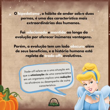 O bipedalismo, o hábito de andar sobre duas pernas, é uma das característica mais extraordinárias dos humanos. Foi selecionado e mantido ao longo da evolução por oferecer inúmeras vantagens. Porém, a evolução tem um lado obscuro além de seus benefícios, e a história humana está repleta de trade-offs evolutivos. Trade-off refere-se a uma situação em que a otimização de uma característica em um organismo implica uma redução na eficiência ou desempenho de outra característica.
