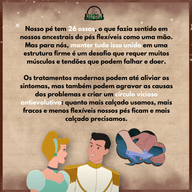 Nosso pé tem 26 ossos, o que fazia sentido em nossos ancestrais de pés flexíveis como uma mão. Mas para nós, manter tudo isso unido em uma estrutura firme é um desafio que requer muitos músculos e tendões que podem falhar e doer. Os tratamentos modernos podem até aliviar os sintomas, mas também podem agravar as causas dos problemas e criar um círculo vicioso antievolutivo: quanto mais calçado usamos, mais fracos e menos flexíveis nossos pés ficam e mais calçado precisamos.