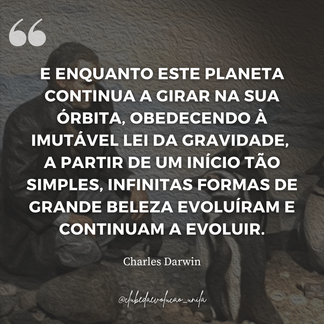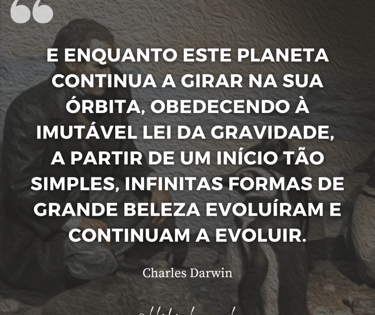 E enquanto este planeta continua a girar na sua órbita, obedecendo à imutável lei da gravidade, a partir de um início tão simples, infinitas formas de grande beleza evoluíram e continuam a evoluir.