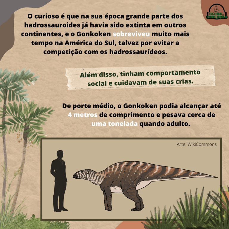 O curioso é que na sua época grande parte dos hadrossauroides já havia sido extinta em outros continentes, e o Gonkoken sobreviveu muito mais tempo na América do Sul, talvez por evitar a competição com os hadrossaurídeos. Além disso, tinham comportamento social e cuidavam de suas crias. De porte médio, o Gonkoken podia alcançar até 4 metros de comprimento e pesava cerca de uma tonelada quando adulto.