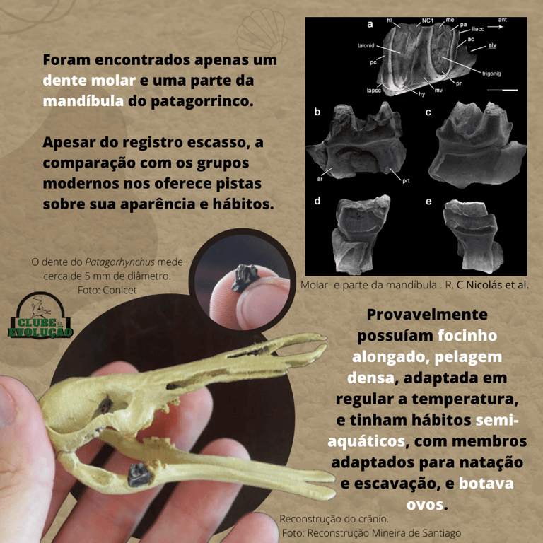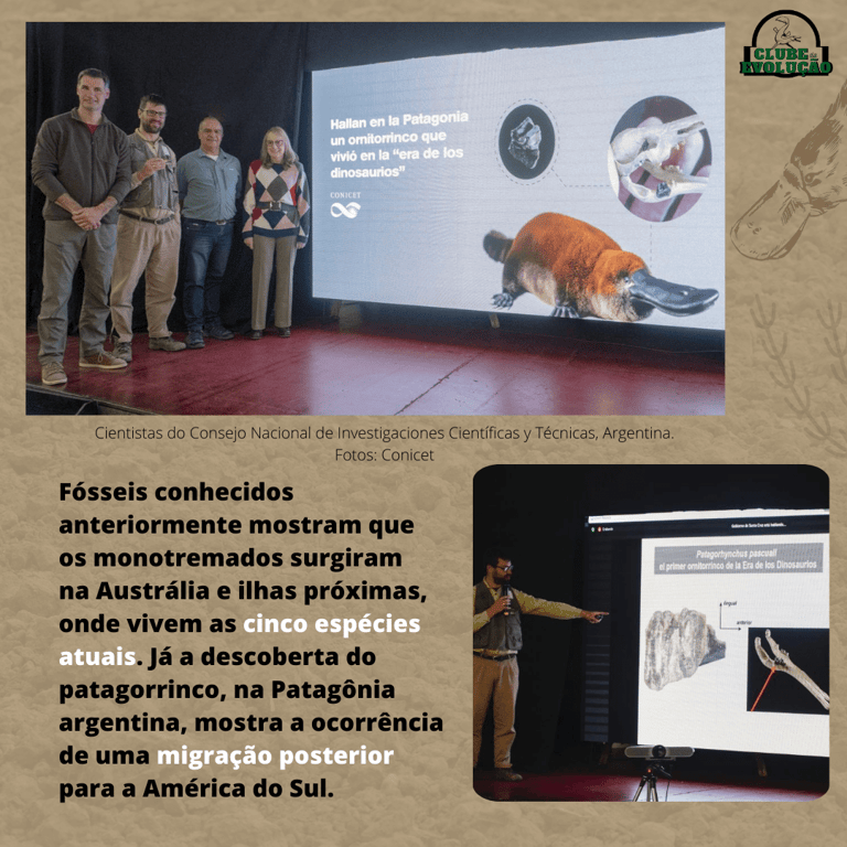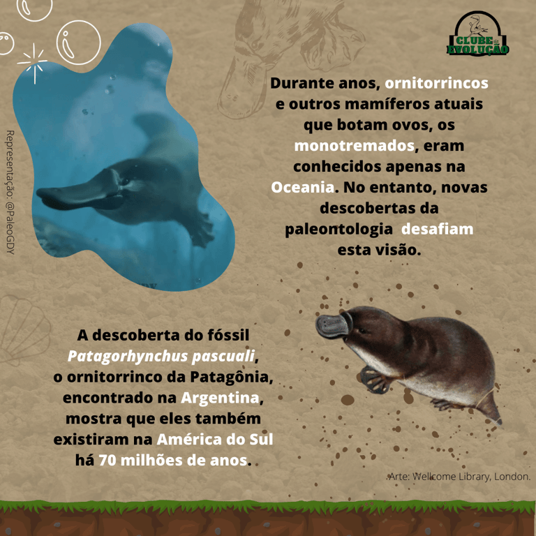 Durante anos, ornitorrincos e outros mamíferos atuais que botam ovos, os monotremados, eram conhecidos apenas na Oceania. No entanto, novas descobertas da paleontologia desafiam esta visão. A descoberta do fóssil Patagorhynchus pascuali, o ornitorrinco da Patagônia, encontrado na Argentina, mostra que eles também existiram na América do Sul há 70 milhões de anos.
